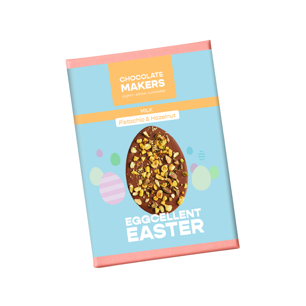 Een feestelijke chocoladereep in paasstijl. Leuk als kleine traktatie of als extra toevoeging aan een paas- of relatiegeschenkpakket.
