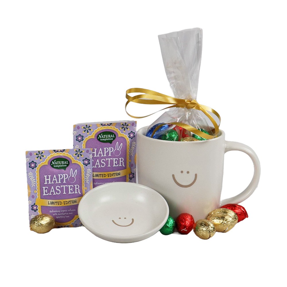 Een feestelijke beker gevuld met een mix van chocolade en zoete lekkernijen. Perfect als compleet paaspakket of smakelijk relatiegeschenk voor medewerkers en klanten.