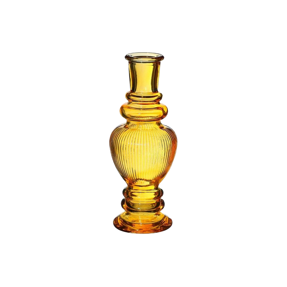 Stijlvolle glazen kaarsenhouder in warme tinten voor extra sfeer in huis. Perfect als decoratief wooncadeau of elegant relatiegeschenk.