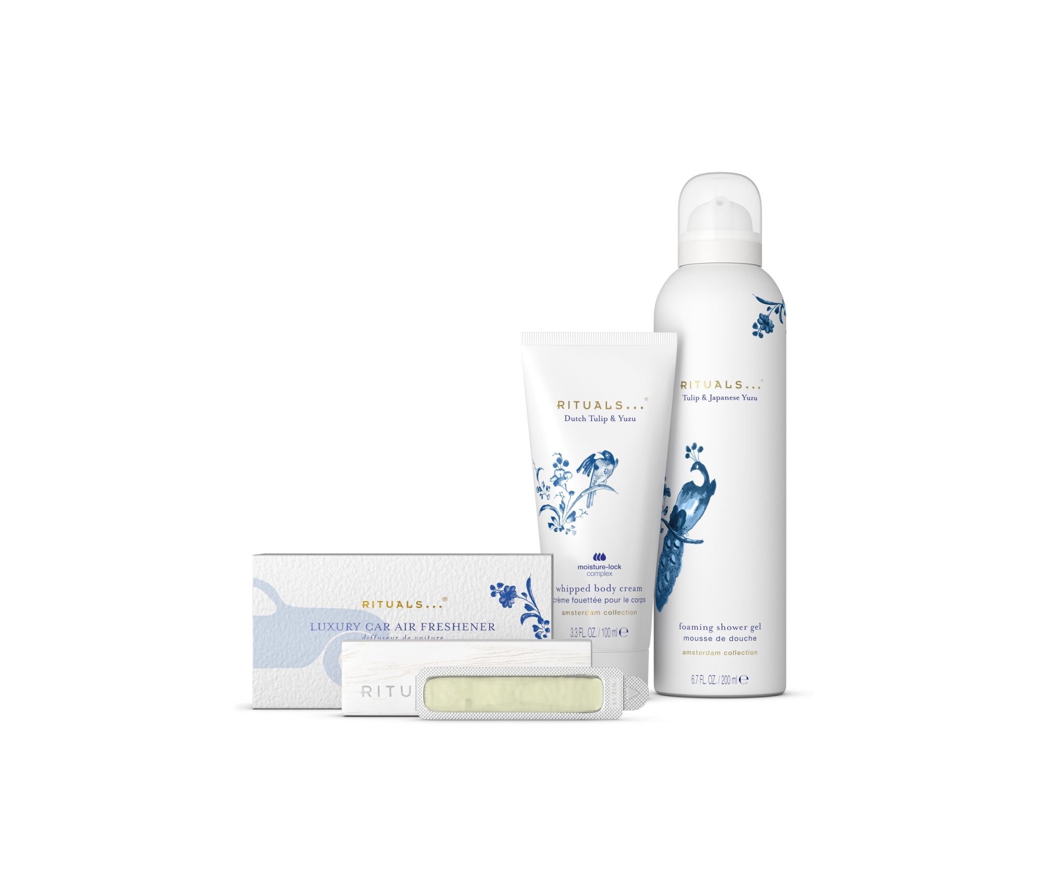 - Doucheschuim 200ml - Bodycreme 100ml - Luchtverfrisser voor in de auto 2x3g