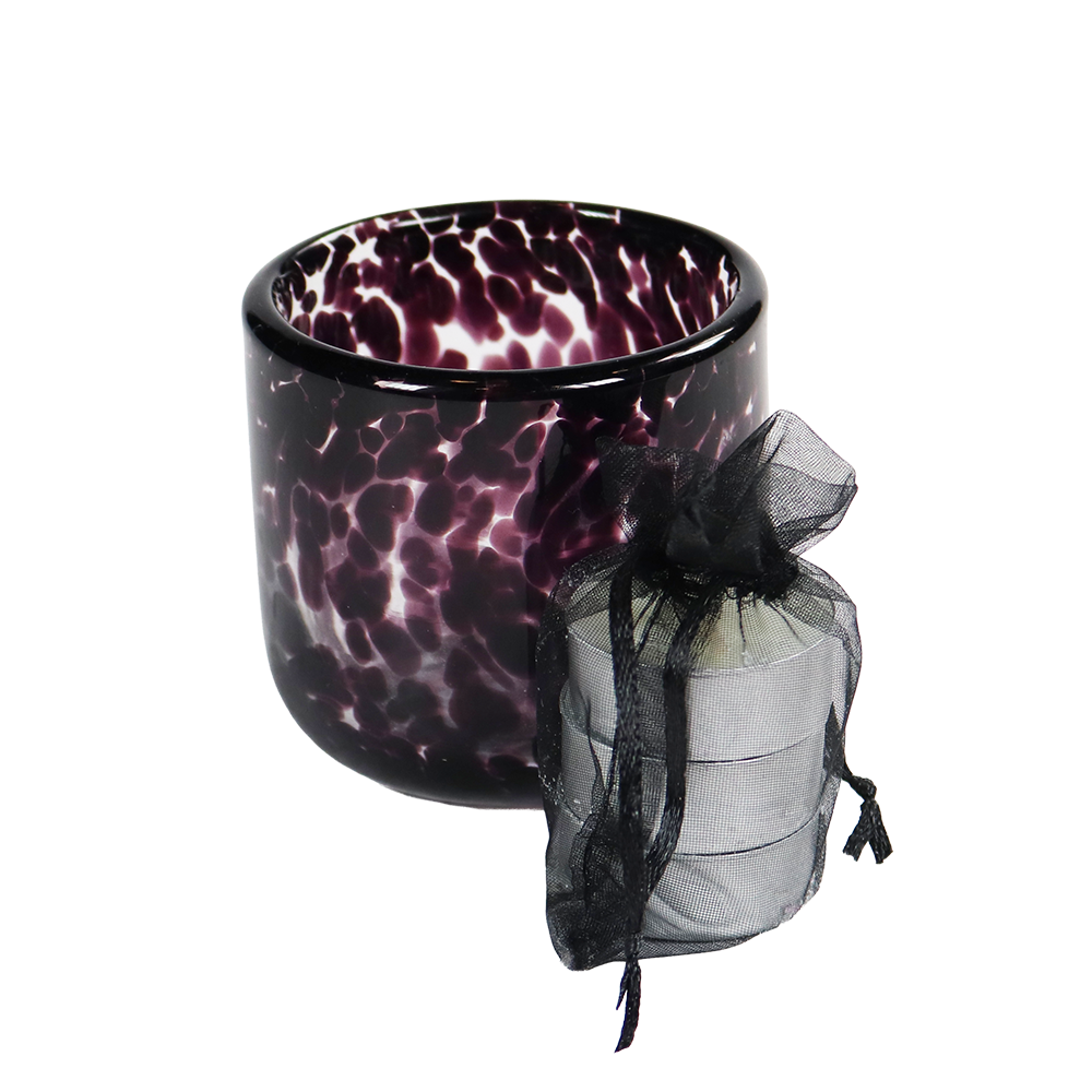 Waxinelichthouder met bijpassende waxine voor direct sfeerlicht. Een compact en stijlvol cadeautje voor elk moment.